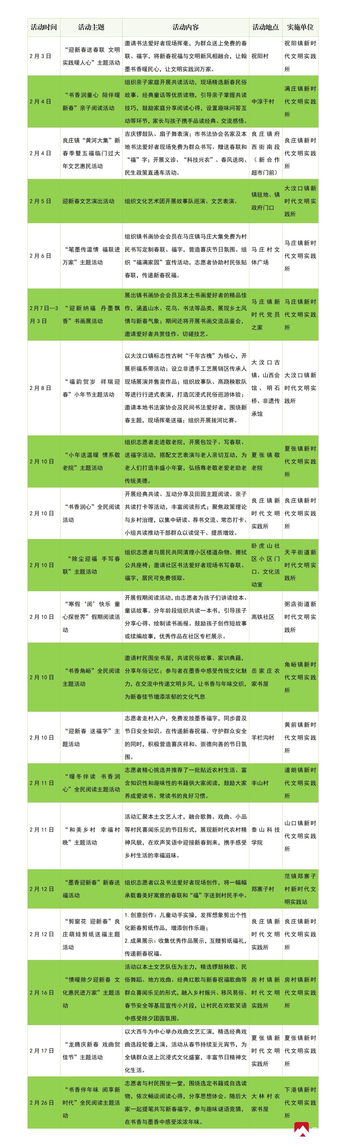 岱岳区2月份新时代文明实践活动计划安排表